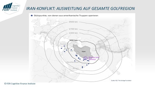 Der militärische Konflikt am Persischen Golf bleibt vorerst unberechenbar. Einer ernsthaften Störung der Ölversorgung dürfte vor allem China entgegenwirken. Dennoch steigen erneut die Risiken für wichtige Handelsrouten und maritime Engpässe („Global Choke Points“).